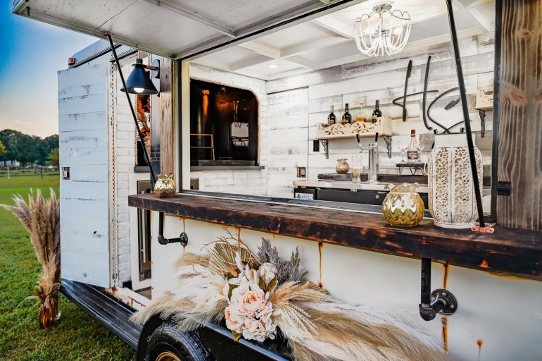 “Inside bars are so standard and boring. That doesn’t elevate the experience. When guests see the trailer, it becomes part of the atmosphere,” Michelle says. “Guests love it. It’s a talking piece, and they rave over it. It’s part of the celebration.”
