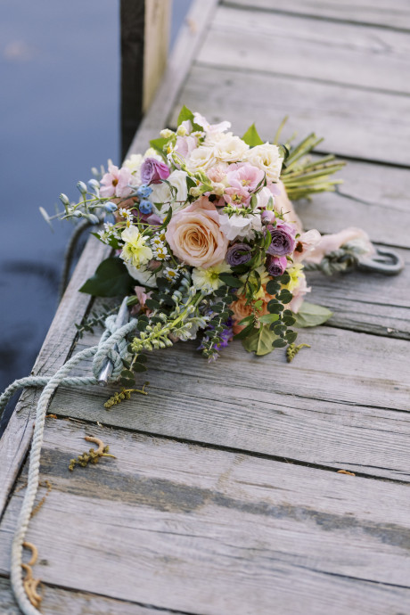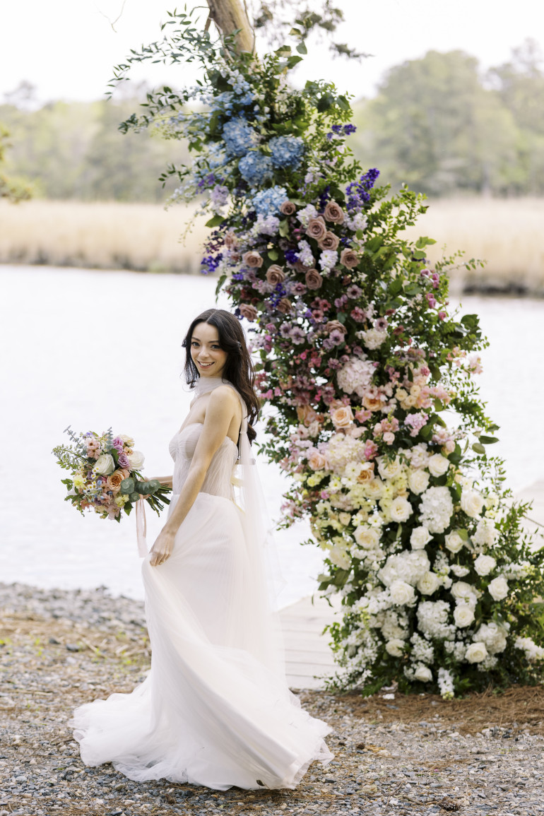 Dani's passion lies in growing flowers, and so a large part of the business lies in providing flowers for wholesale. However, through selling to and working with other designers, Dani also learned about the mechanics, color palettes, tips, and tricks of floral design. Dani laughs, "Call it passive training, if you will. I have talented designers all around me who I've been privileged to learn from. I still bring in freelance designers to help during the busy season." But putting her hand to design has led to some amazing compositions and arrangements, and a recently styled shoot on family hunting property on the Wicomico River. The shoot featured Winters Farm florals in a design style she calls "Eastern Shore meets Coastal".
